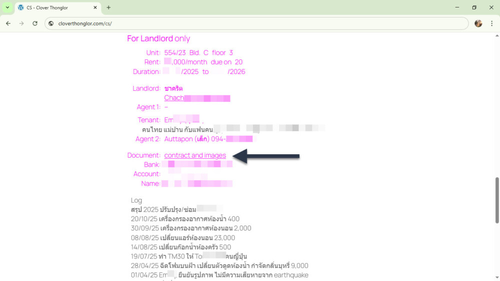 There are 2 sections for this “Landlord only“. The first section records various info for the unit on Google Drive. To view this section, login is required.