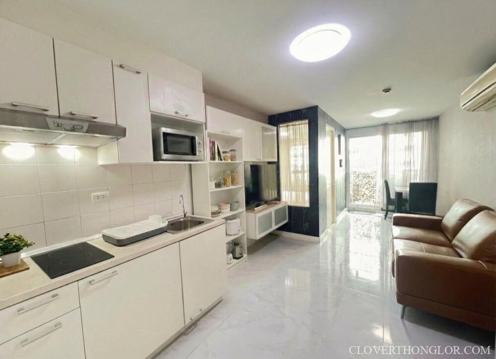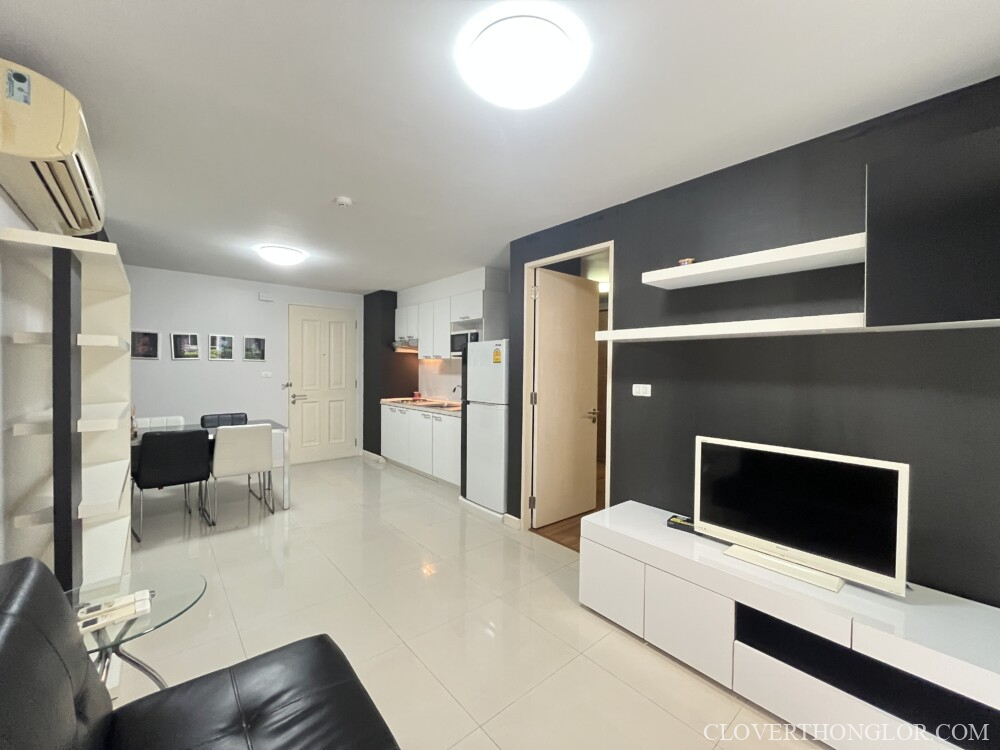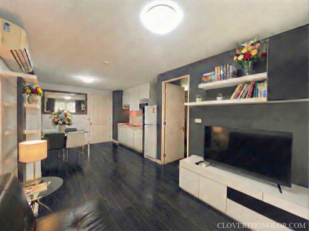 เพิ่มบิ้วอินปิดประตูกำแพงหลังโซฟา แล้วจัดตำแหน่งโซฟาใหม่ เปลี่ยนทีวีใหม่ ดูห้อง MN