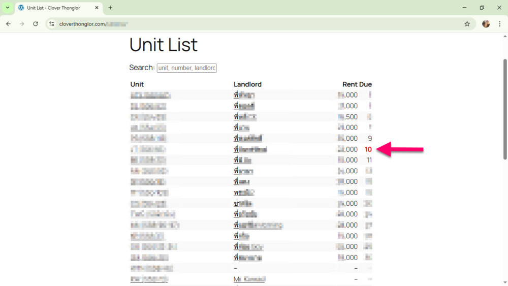 ตัวอย่างระบบหลังบ้าน ใช้สำหรับเตือนให้ผู้เช่าชำระค่าเช่าให้ตรงเวลา