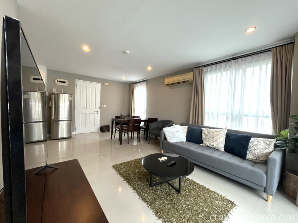 EN: Typical two-bedroom units start from 70sqm to 83sqm. They consist of living room, master bedroom with private bathroom, second bedroom and common bathroom. They are suitable for a family, friends or those who want an extra room. Their rental prices range between 30,000 to 45,000THB/month subjected to size, view, decoration, furniture and appliance. Note that some units may change the second bedroom for other functionality such as study room or extra living room; moreover, there are a few units greater than 100sqm. Please see real examples below.